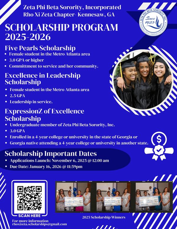 The ExpressionZ of Excellence Scholarship is designed to provide financial support to an undergraduate member of Zeta Phi Beta Sorority, Inc. Applicants must be enrolled in a 4-year college or university within the state of Georgia or be a permanent resident of Georgia attending a 4-year college or university outside the state. This scholarship underscores the sorority’s commitment to academic excellence and empowerment, fostering success and leadership among its undergraduate members.