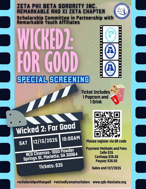 Zeta Phi Beta Sorority, Inc. Rho Xi Zeta Chapter Scholarship Committee and Remarkable Youth Affiliates Presents...Wicked: For Good - Special Screening on December 13, 2025.